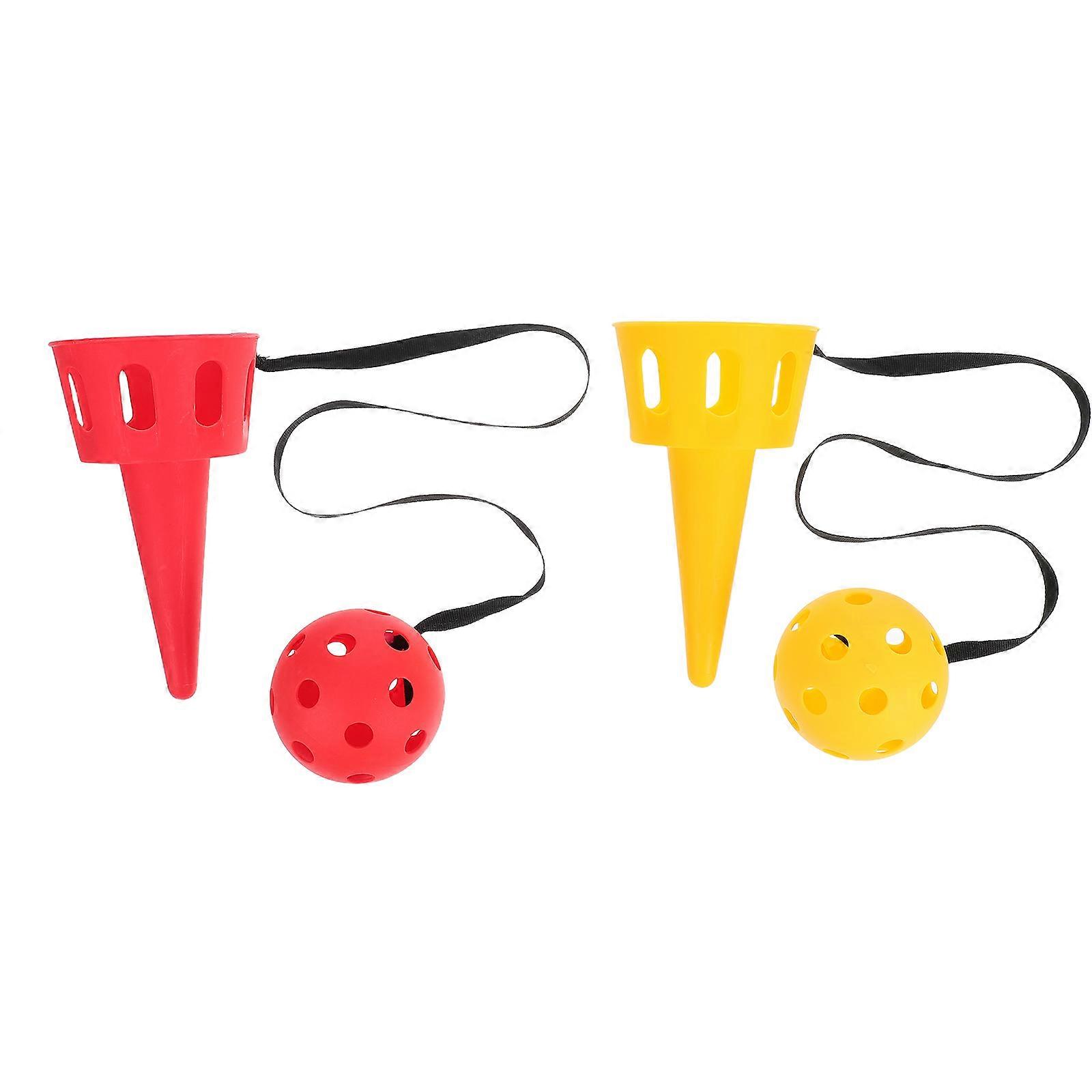 Outdoor Balls Kids Toss Throwing Toys Scoop And Toss Game Yellow 8cm Diameter 62cm Cord Length 16.5cm Ball Tube Length 2 Sets