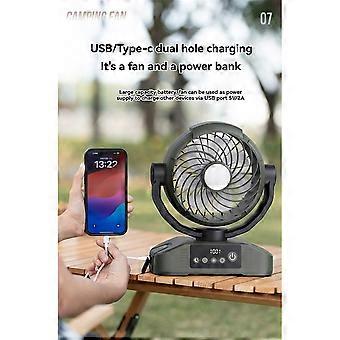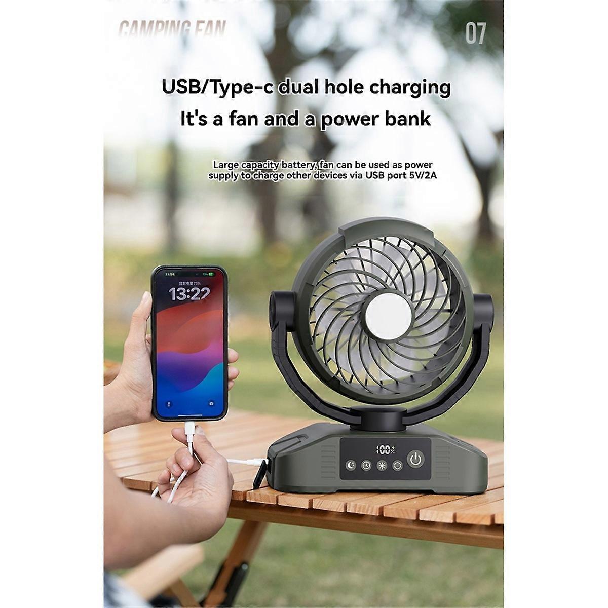 Desktop Outdoor Fan 20000mAh Rechargeable Fan with LED Light 5 Speeds 3 Brightness Levels for Camping Travel A
