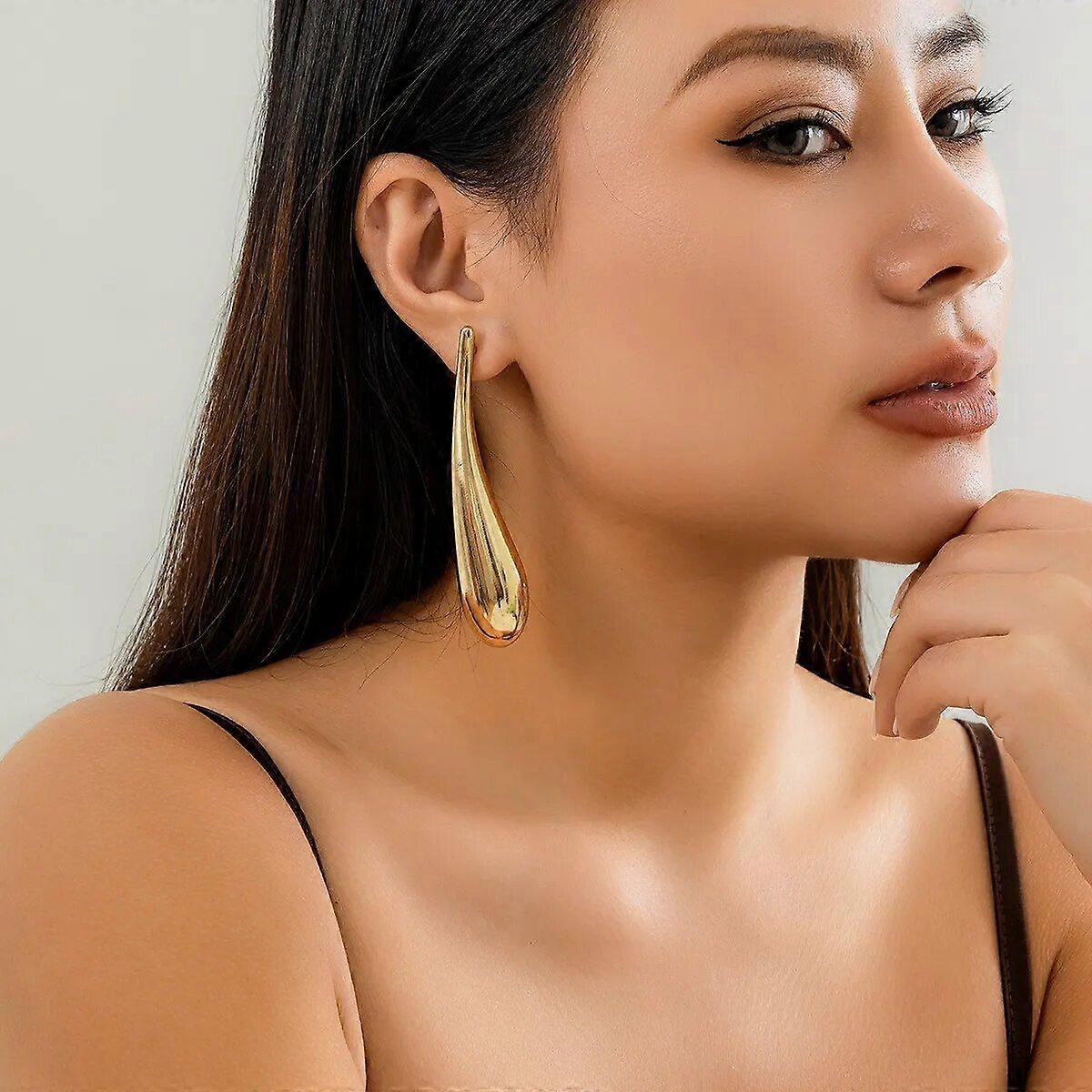 Exaggerated Geometric Water Drop Long Earrings For Women Party Jewelry Luxury Punk Gold Color Dangle Earrings