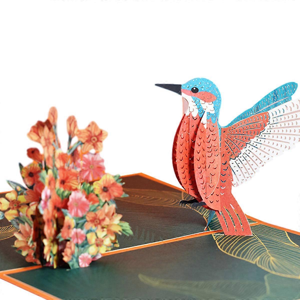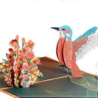 Lovely Hand-made Paper Carving Hummingbird Pop Up Card, 5x7-3D Greeting Card, Cards for Mom, Thinking of You, Love Card