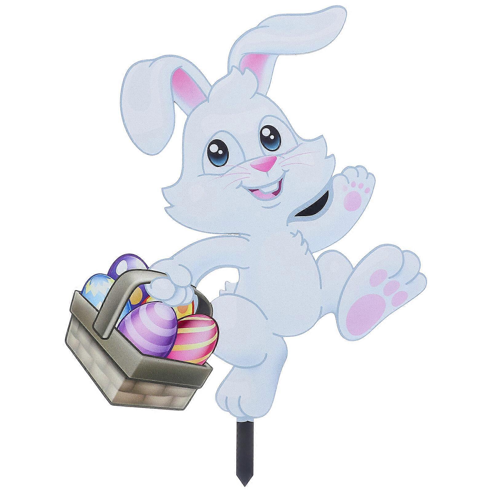 Lovely Cartoon Bunny Stake Decor Easter Rabbit Pattern Garden Stake Outdoor Yard Bunny Stake