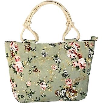 Lovely Ladies Canvas Wallet And Handbag, Large Capacity With Zipper, Green Big Flower Upgrade Version