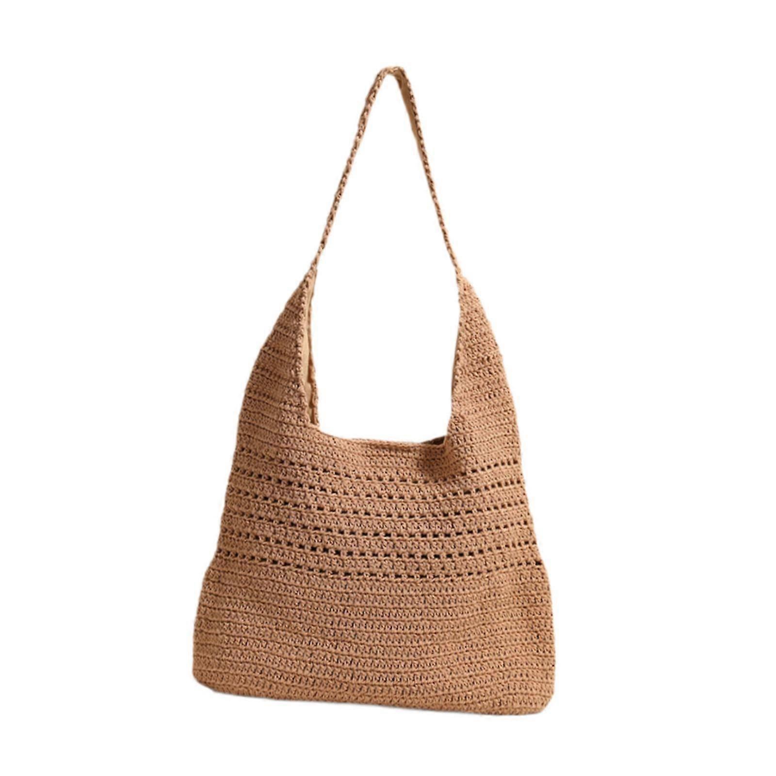 Woven Bag for Women Shoulder Bag Stylish Elegant Boho Travel Purse Beach Bag Light Coffee