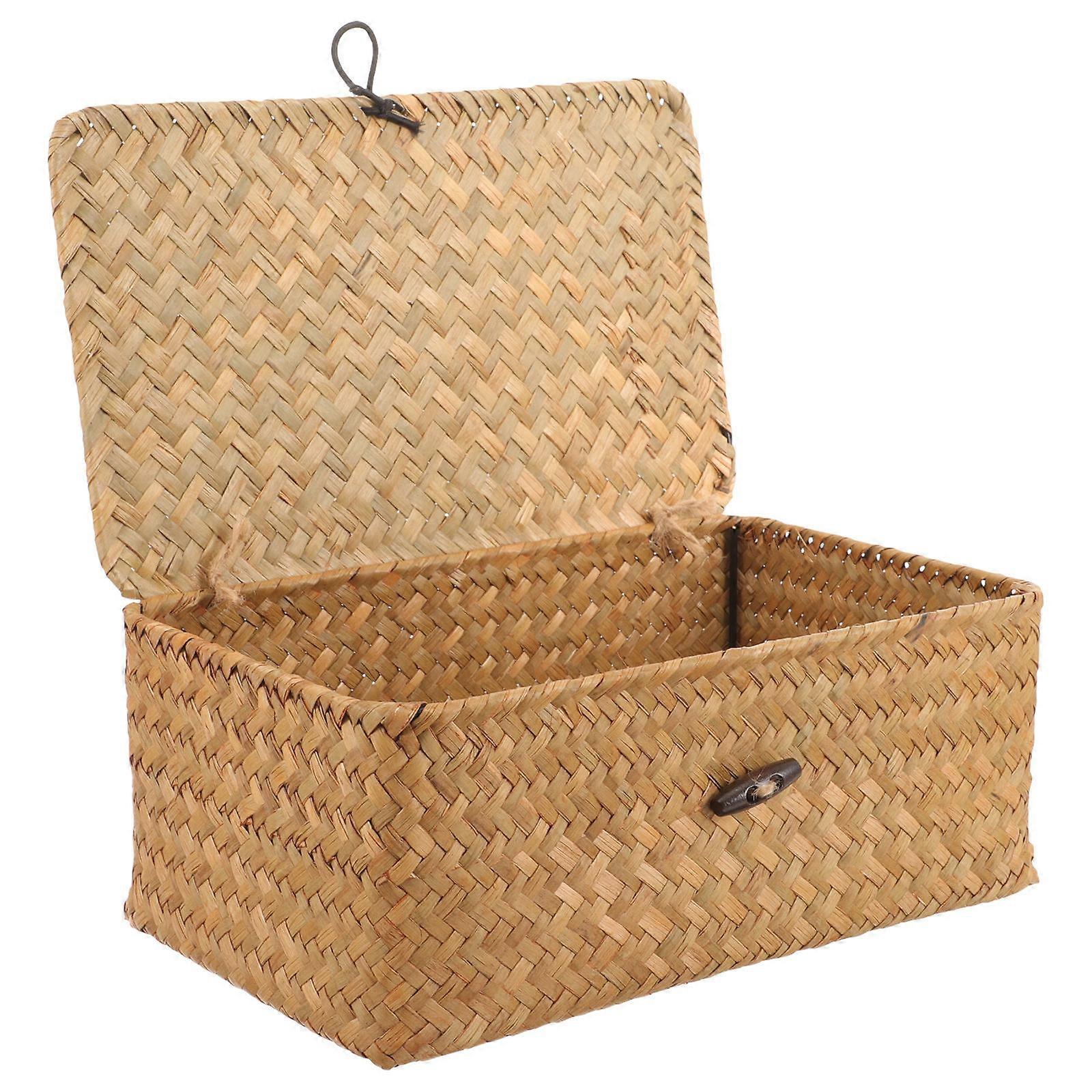 Woven Sundries Organizer Straw Braid Basket Bedroom Office present Giving Square Straight Angle Shape 1Pcs