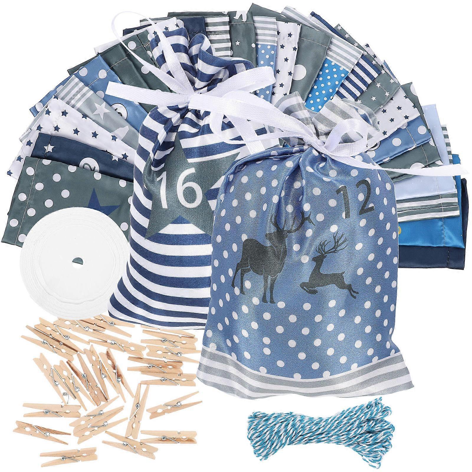 The advent calendar bags can be filled is not only a highlight for children. Even adults enjoy sweetening the waiting time until Christmas with daily surprises. The many small bags with numbering are connected by a string and can be easily hung up. Surprise your loved ones during the Christmas season and fill them with an advent calendar bag. Features -Color:Multi -Material:Wooden, fabric -Size:15.00X10.00X0.30cm/5.89X3.93X0.12in - Using fabric, clear printing color. The appearance is and beautiful, perfect for hanging on the wall to Christmas. - Christmas theme pattern, strong festive atmosphere. Meet your decorative needs for your home. - Decoration is beautiful and practical, can be used as a Christmas day countdown calendar or Christmas candy gift bag. - Decorate creatively according to your preferences. You can choose what gift to put in, very practical. - Suitable for Christmas day countdown, Christmas party home, shop decoration goodie bags. Wide range of applications. Package list: 72 x bags 3 x roll of ribbon 3 x rope 72 x wood clips