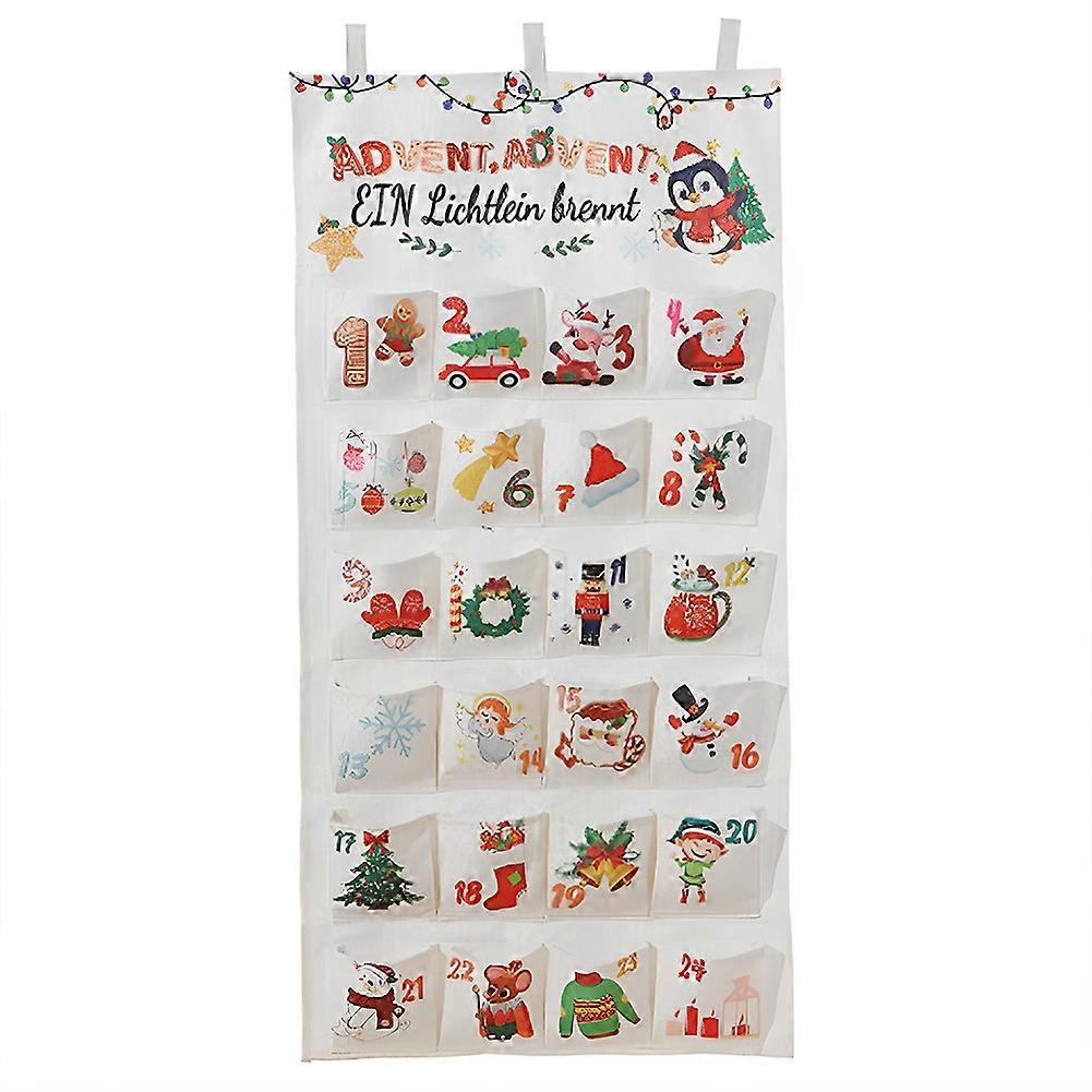 Fabric Christmas Advent Calendar Xmas Wall Decoration Reusable Advent Calendar 2024 with 24 Pockets for Holiday Home Decor