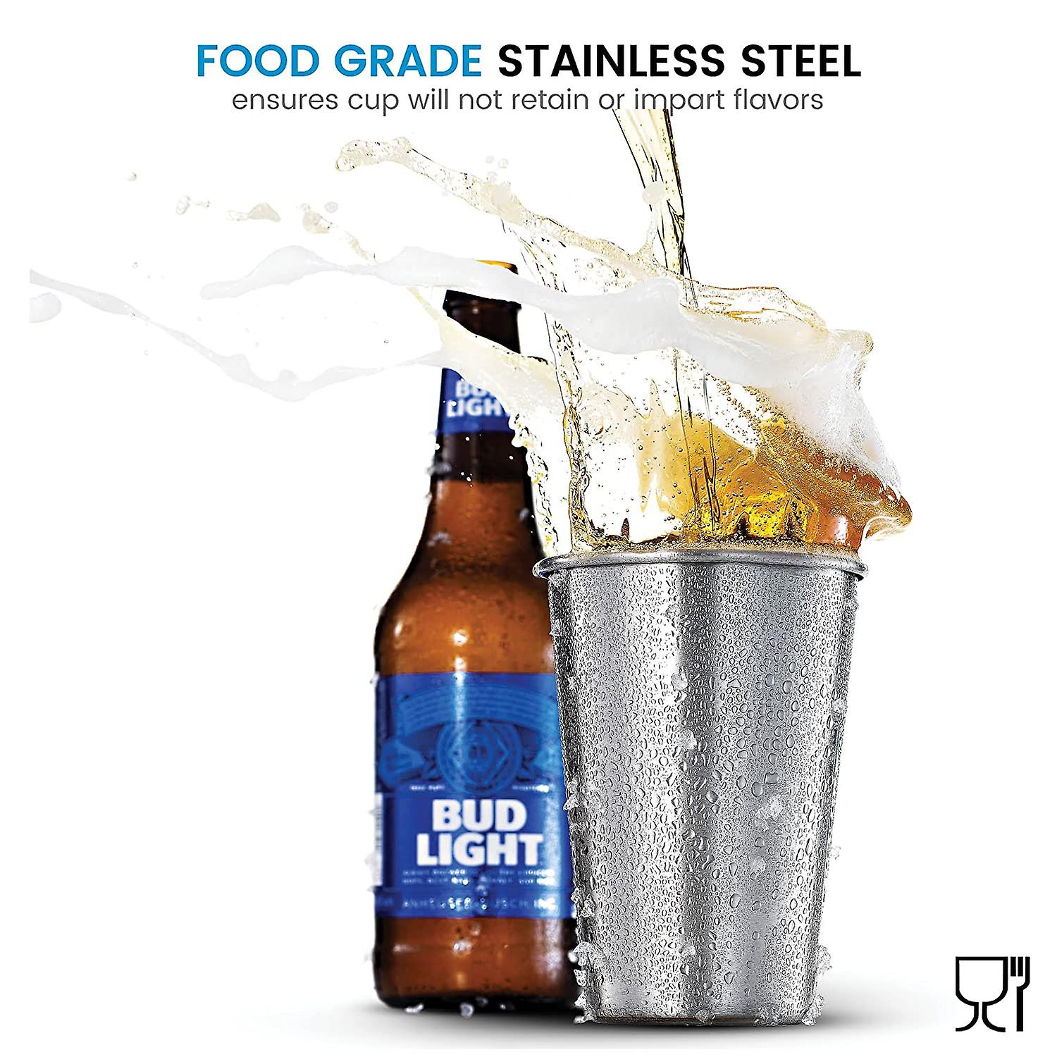 Premium Grade Stainless Steel Pint Cups Water Tumblers (5 Piece) Unbreakable, Stackable, Brushed Me