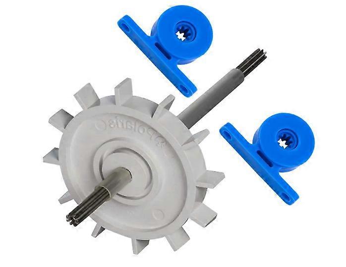 Adaptable replacement transmission shaft (turbine) made from quality components: stainless steel axle and PVC wheel Supplied with centering jigs Compatible with the Polaris 180 280 and 380 pool robots Simple and quick assembly after opening the cover of the robot and removing the wheels