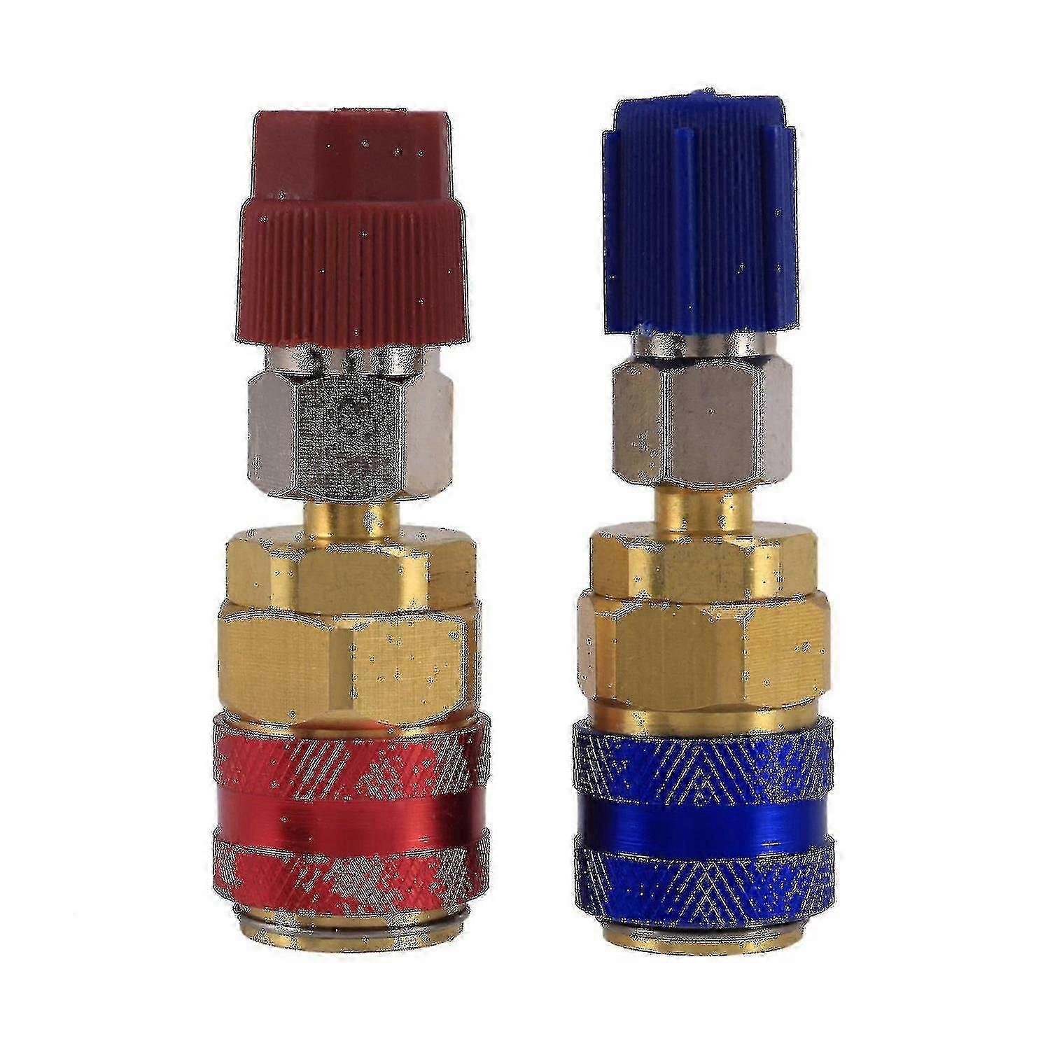 Description Item Type: Air-conditioning InstallationHigh and Low R134A Quick Coupler AdaptersCompatibility: R134 of application: Car FluorineDegrees Connectors:180 degreeSide fitting for A/C manifold gauge set (R134A) type.colour:Red + blueMaterial:brasssize:Blue Inside diameter:14 mmRed Inside diameter:17 mmPackage Contents:2 x Quick Coupler(With Cap)Only the above package content, other are not included.Note: Light and different displays may cause the color of the item in the a little different from the real thing. The measurement allowed error is +/- 1-3cm.