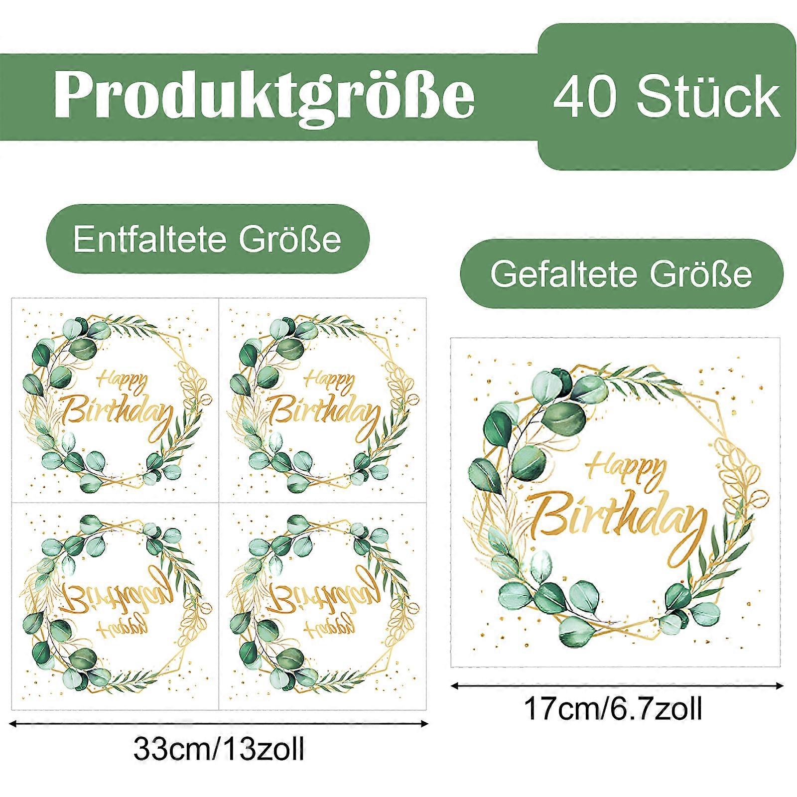 Sage Green Napkins, Gold Foil Paper for Wedding Garden Parties, Happy Birthday Tableware (40PCS, Green)