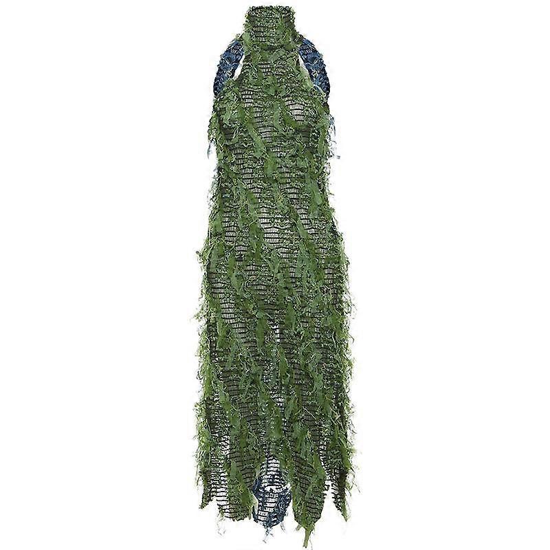 Autumn Women's Sexy High Neck Sleeveless Tassel See Through High Waist Slim Long Dress