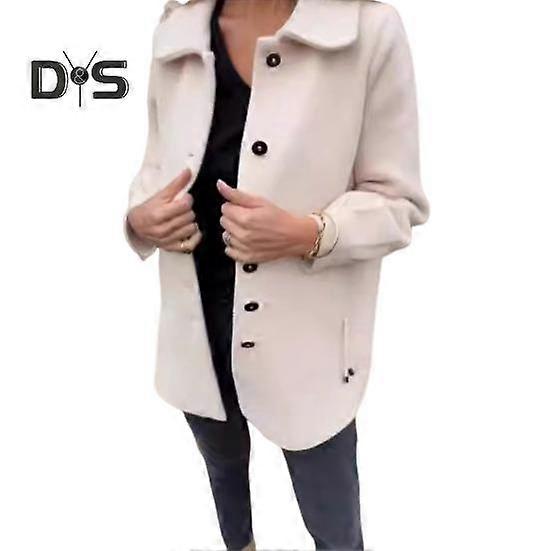 Fall Spring Women Coat Single-breasted Buttons Loose Solid Color Turn-down Collar Cardigan Long Sleeves Dating Commuting Jacket