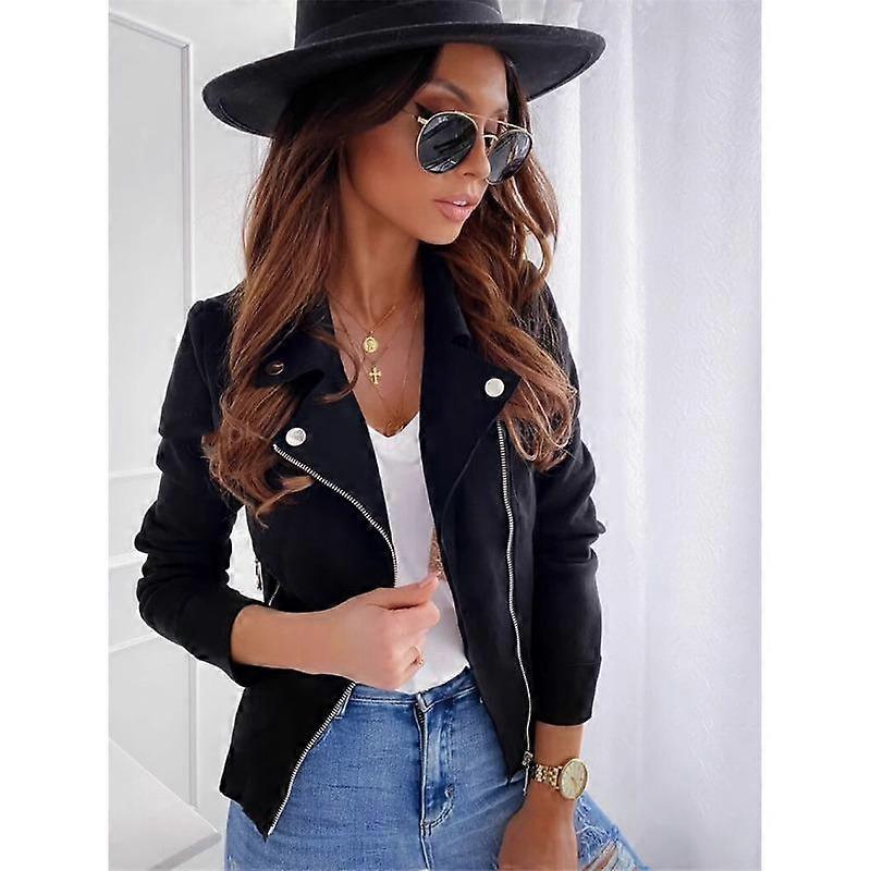 Autumn and Winter Women's Zip Suede Short Jacket Lapel Solid Colour Jacket