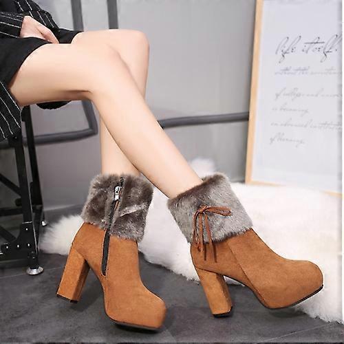 Autumn And Winter Thick High Heeled Padded Warm Suede Round Toe Boots