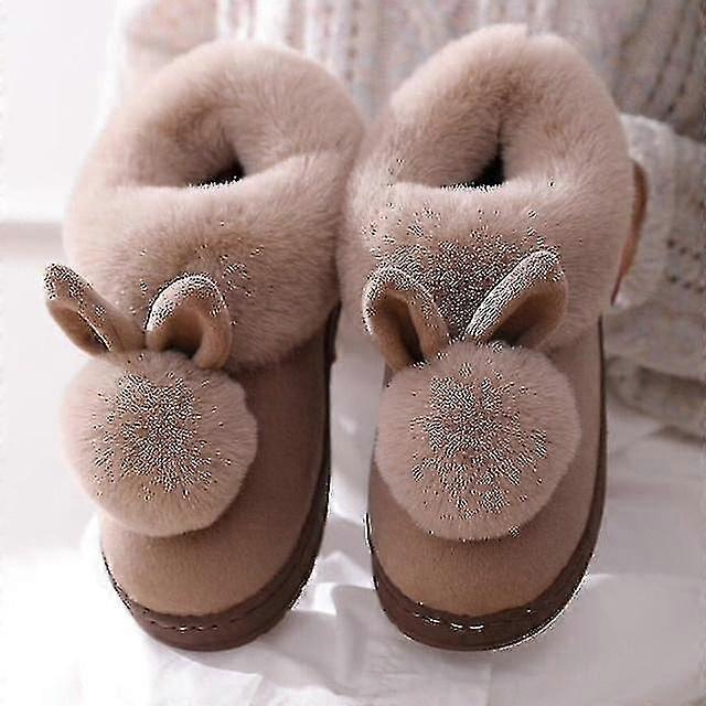 Autumn Winter Cotton Slippers Fur Rabbit Thick Bottom Indoor Cotton Shoes Womens Slippers Cute Fluffy Slippers#light Brown