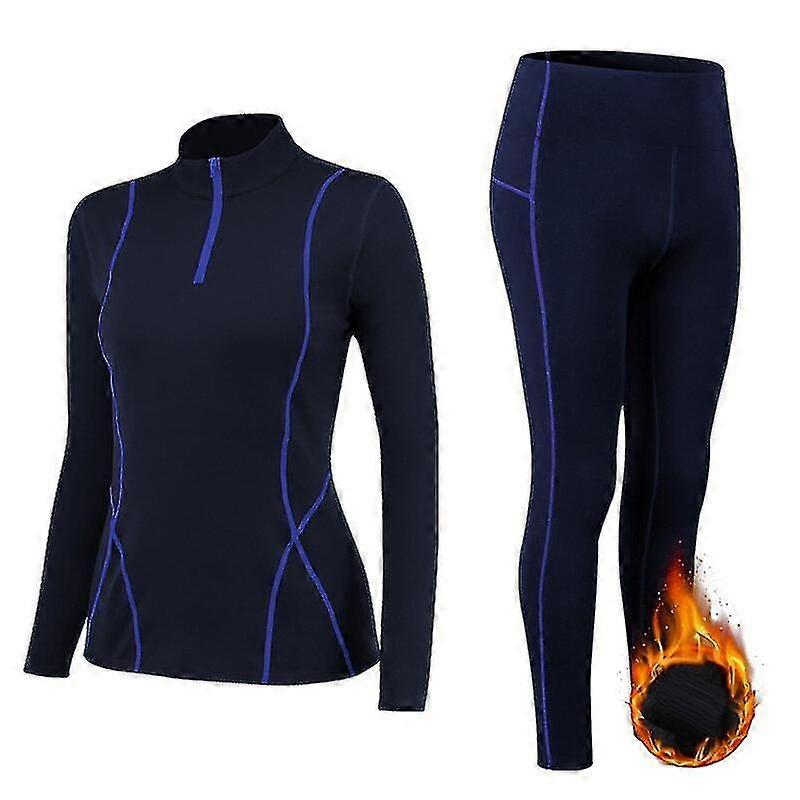 Autumn/winter Padded Fitness Suit Women's High Stretch Skinny Sports Running Training Yoga Two Piece #dark Blue