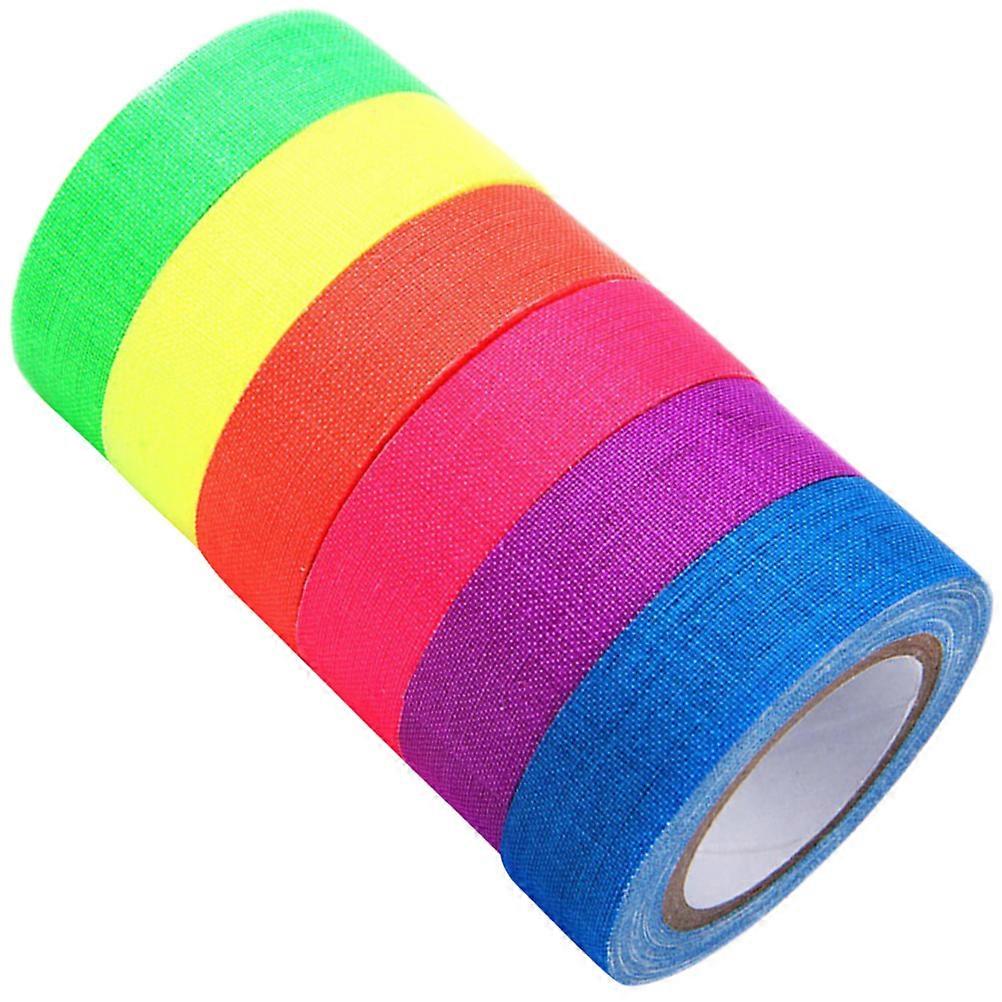 Fluorescent Tape 6 Rolls Glow In The Dark Decoration For UV Party Assorted Color High Adhesion Neon Process