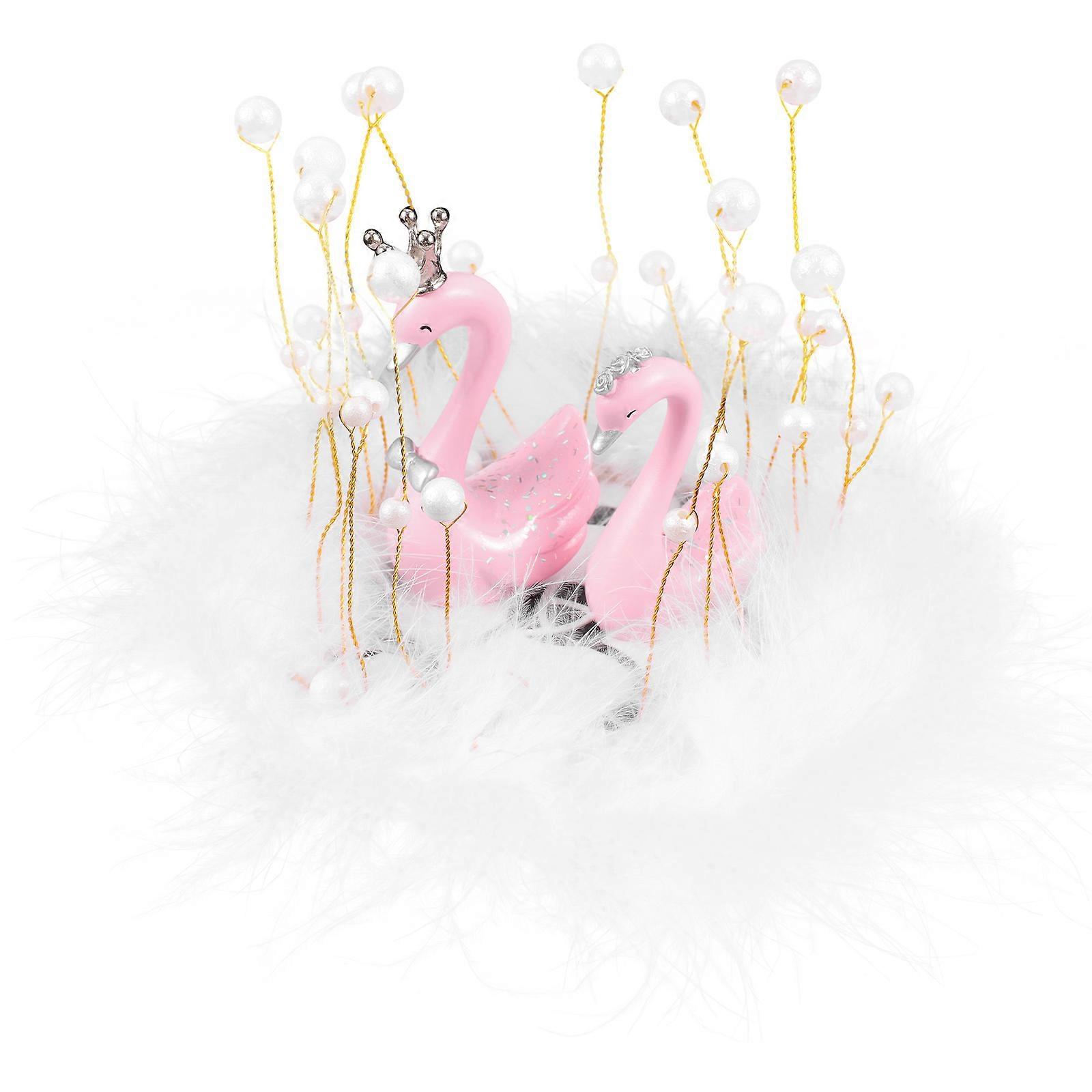 Swan Figurines Car Dashboard Ornament Adhesive Installation Pink 8X8X6cm 1Set