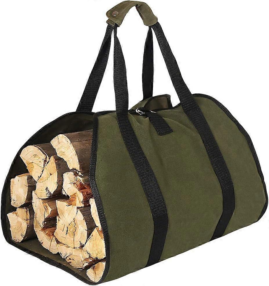 Log Carrier,Water Resistant Large Canvas Log Holder Carrying Bags with Handle for Firewood Storage,Fireplace Tools Indoors,Outdoor, Camping Trip Green
