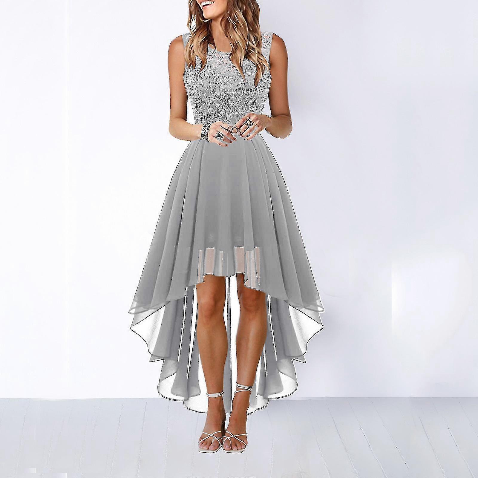 Lace Dress Bow Belt Elegant Irregular Length Dresses For Women Wedding Guest Sleeveless Bridesmaid Cocktail Party Dress