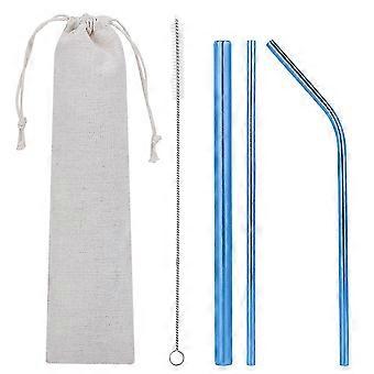 Portable Stainless Steel Drinking Straws for Travel - Blue