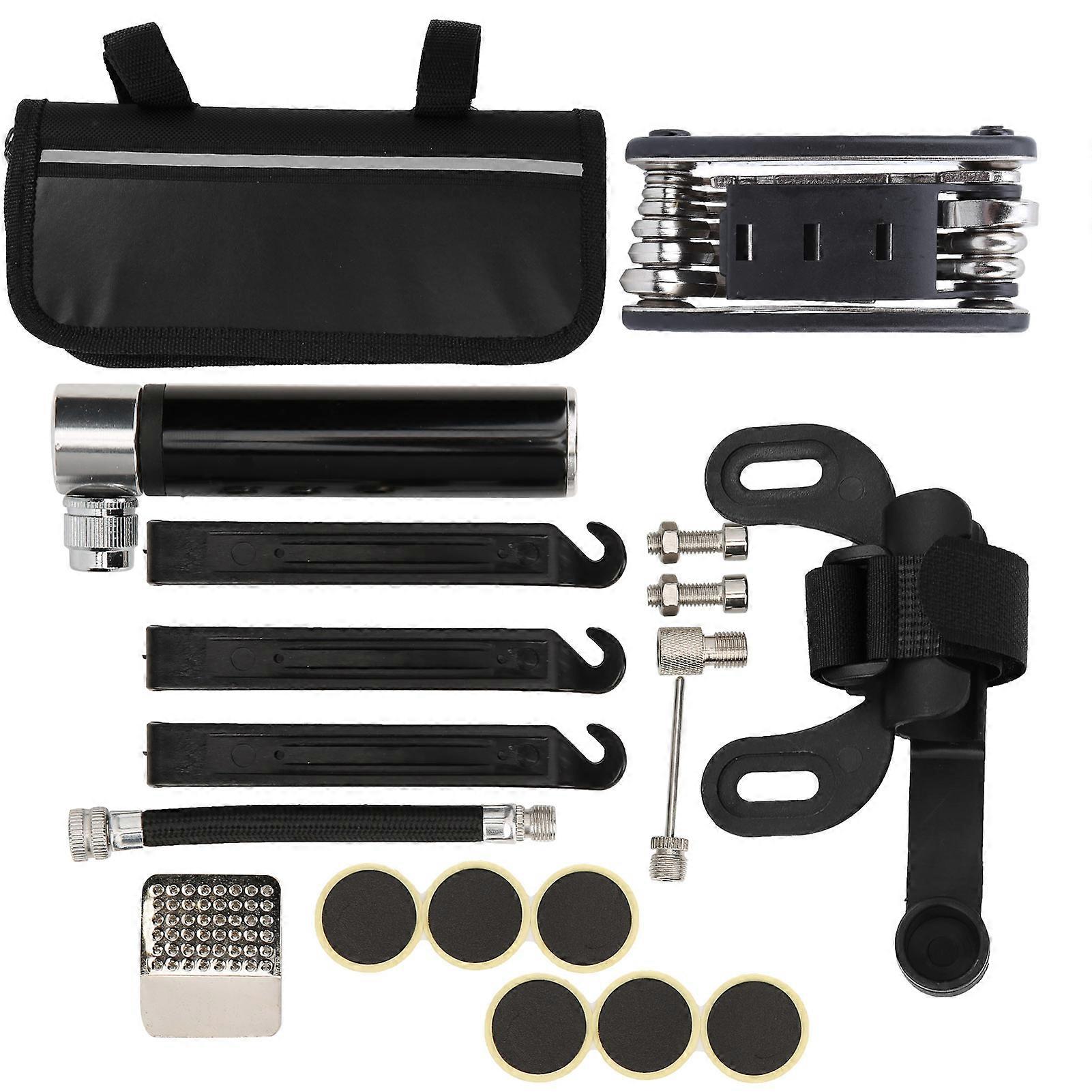 Portable Bicycle Pump 120PSI 16?in?1 Multifunction Tire Inflator Repair Patch Kit Bike PartsBlack