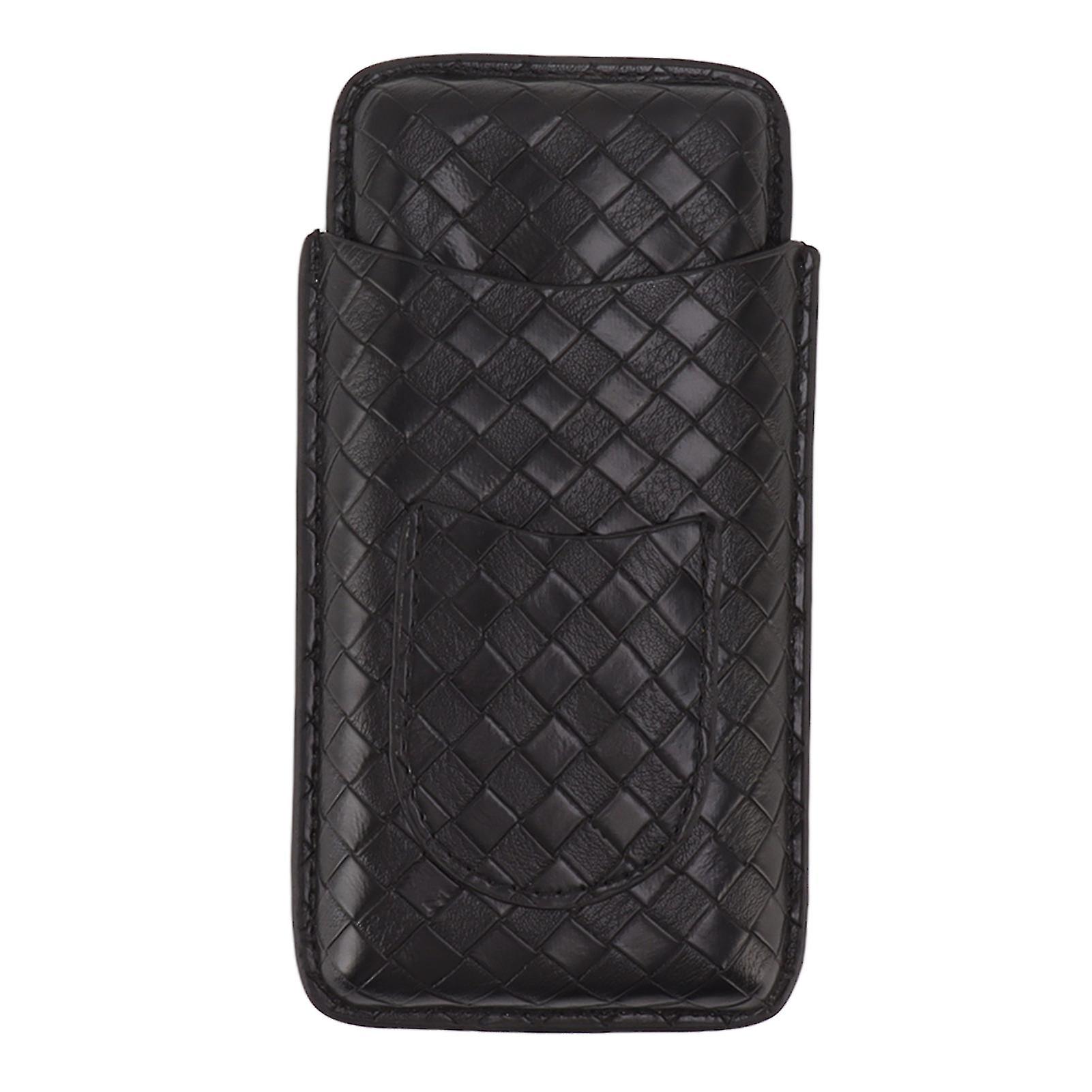 Portable Cigar Case for Men - Leather Travel Humidor with Moisturizer - Black Gift