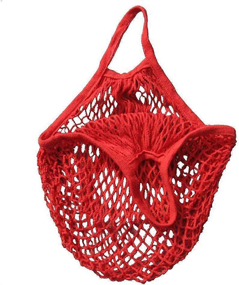 Portable Multifunctional Net Shopping Bag Cotton Mesh Tote Bag Reusable Shopping Bag for Grocery Market Beach Red1pcs