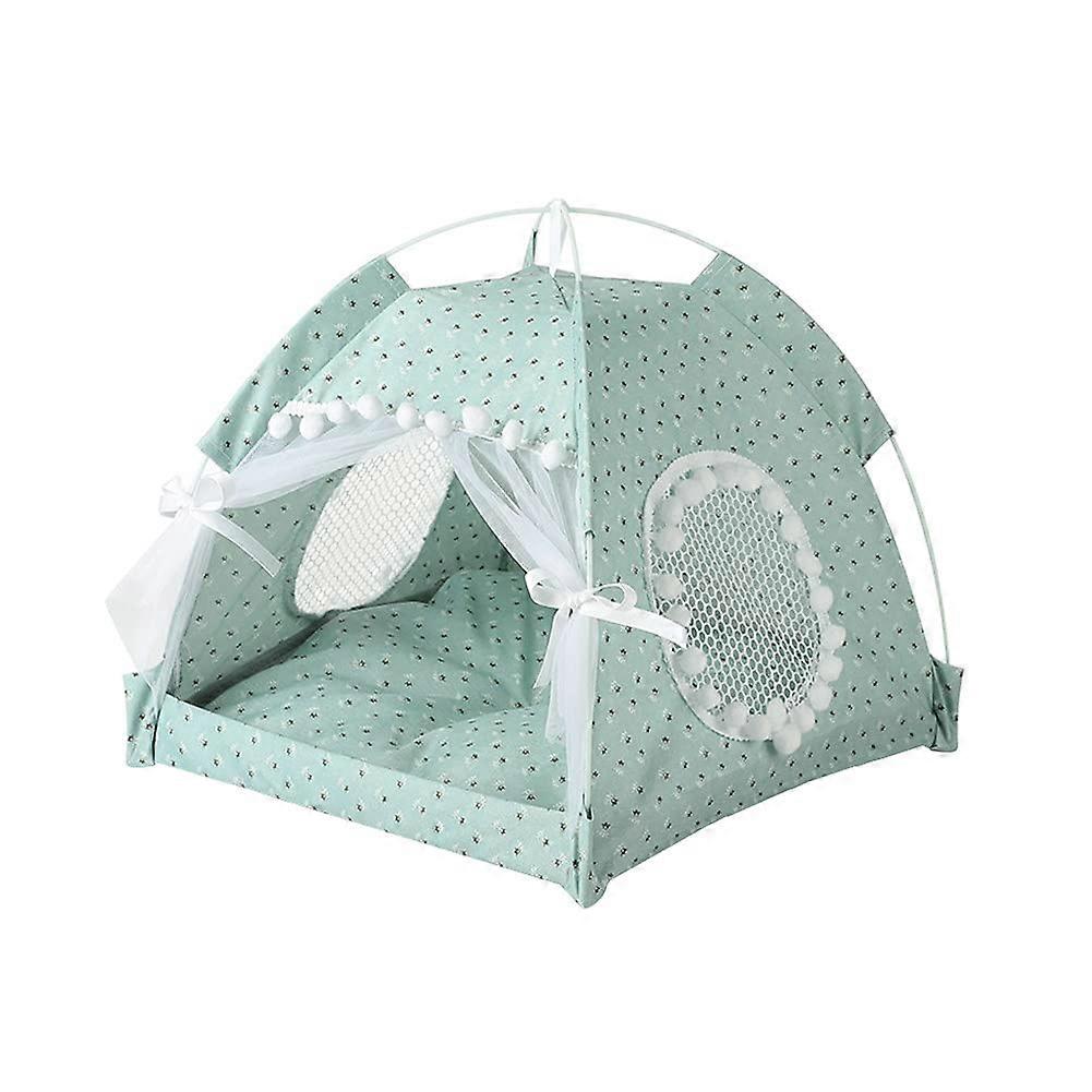 Portable Pet Shade Tent for Cats and Dogs, 35 Inch Foldable Sun Protection House, Light Green Indoor Outdoor Bed for Small Animals
