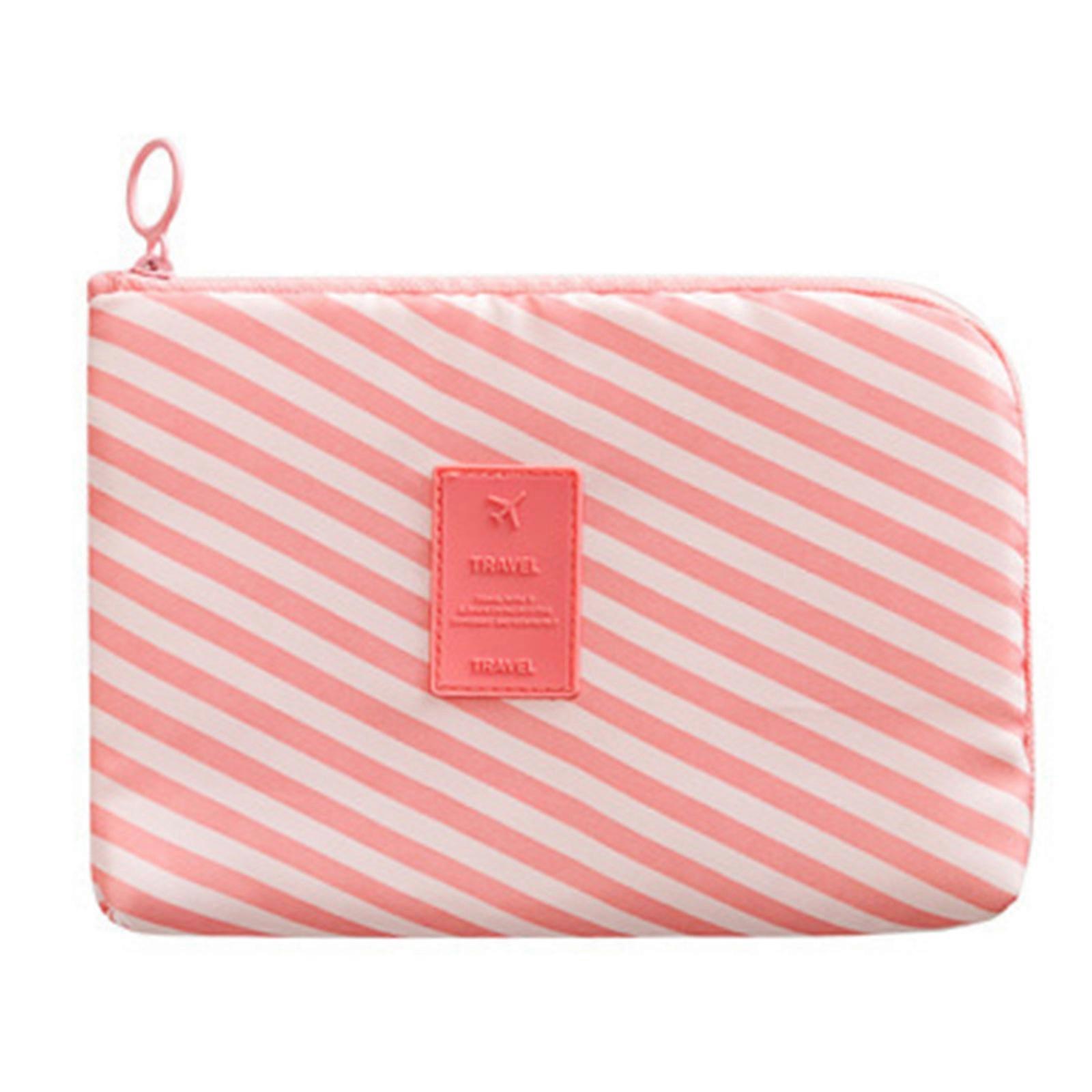 Portable Travel Organizer Bag Compact and Durable Storage Solution for Electronics, Cables, and Cosmetics pink stripes
