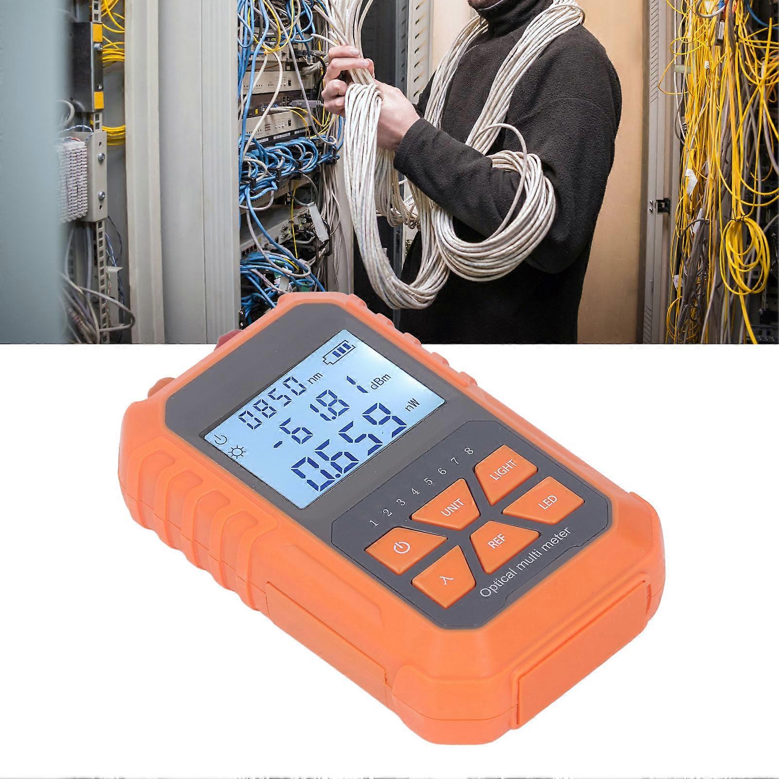 Optical Multi Meter Portable Mini Rechargeable Power Fiber Optic Cable Tester ‑70~+6dbm 5KM Visual Fault Locator Item Type: Optical Multi Meter Wavelength Range: 800 - 1700nm Detector Type: For InGaAs Measuring Range (dBm): -70~+6 Uncertainty: ±5% Standard Wavelength (nm): 850, 980, 1270, 1300, 1310, 1490, 1550, 1577, 1625 Display Resolution: Linear Display: 0.1%, Logarithmic Display: 0.01dBm Red Light Working Wavelength (nm): 650 Output Distance: 5KM Frequency Identification (Hz): 0, 270, 1000, 2000 Number of Data Saved Offline (pcs): 40 Operating Temperature (℃): -10~+60 Storage Temperature (℃): -25~+70 Automatic Shutdown Time (min): 10 Battery Duration (h): ≥48 Battery (mAh): 1 x 3.7V rechargeable lithium battery 600mah