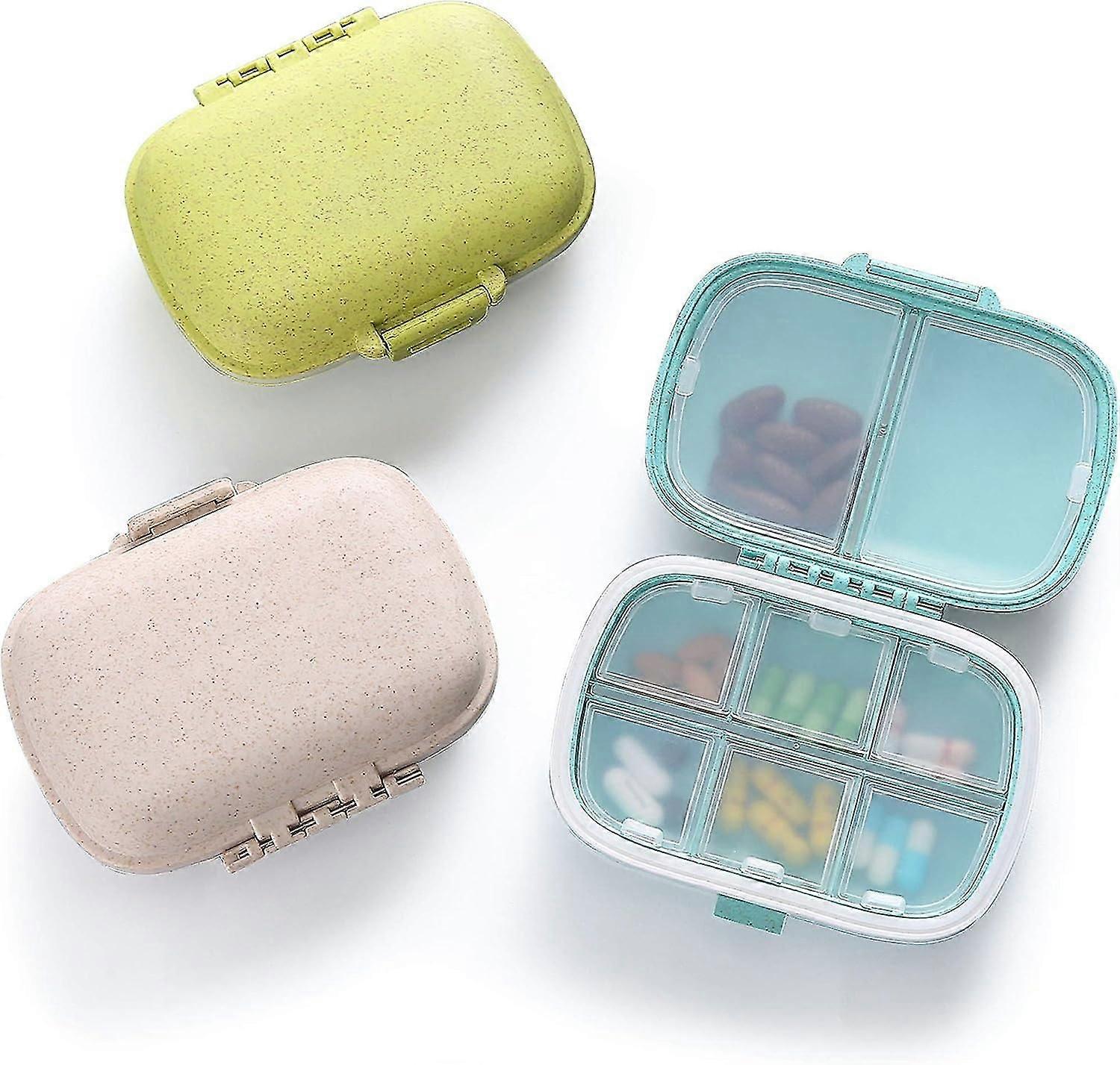 Portable Pill Box Organizer For Travel - 3 Pack Moisture Proof Pill Case With 8 Compartments - Small Pocket Purse Medicine Vitamin Holder (blue+green+