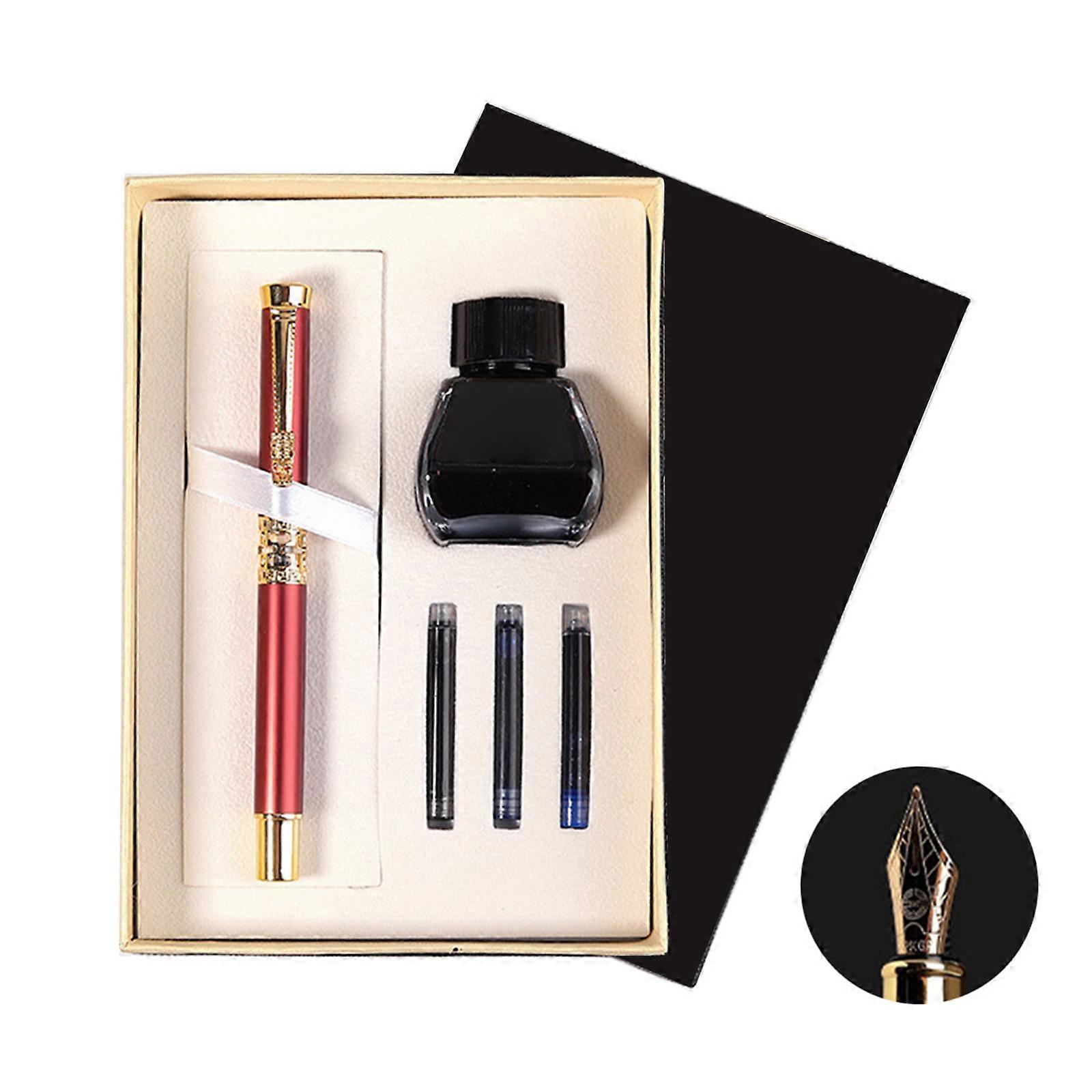 Portable Exquisite Refillable Signature Pen Kit Refill Ink Sac Ink Bottle Calligraphy Pen Writing Pen Business Gift red