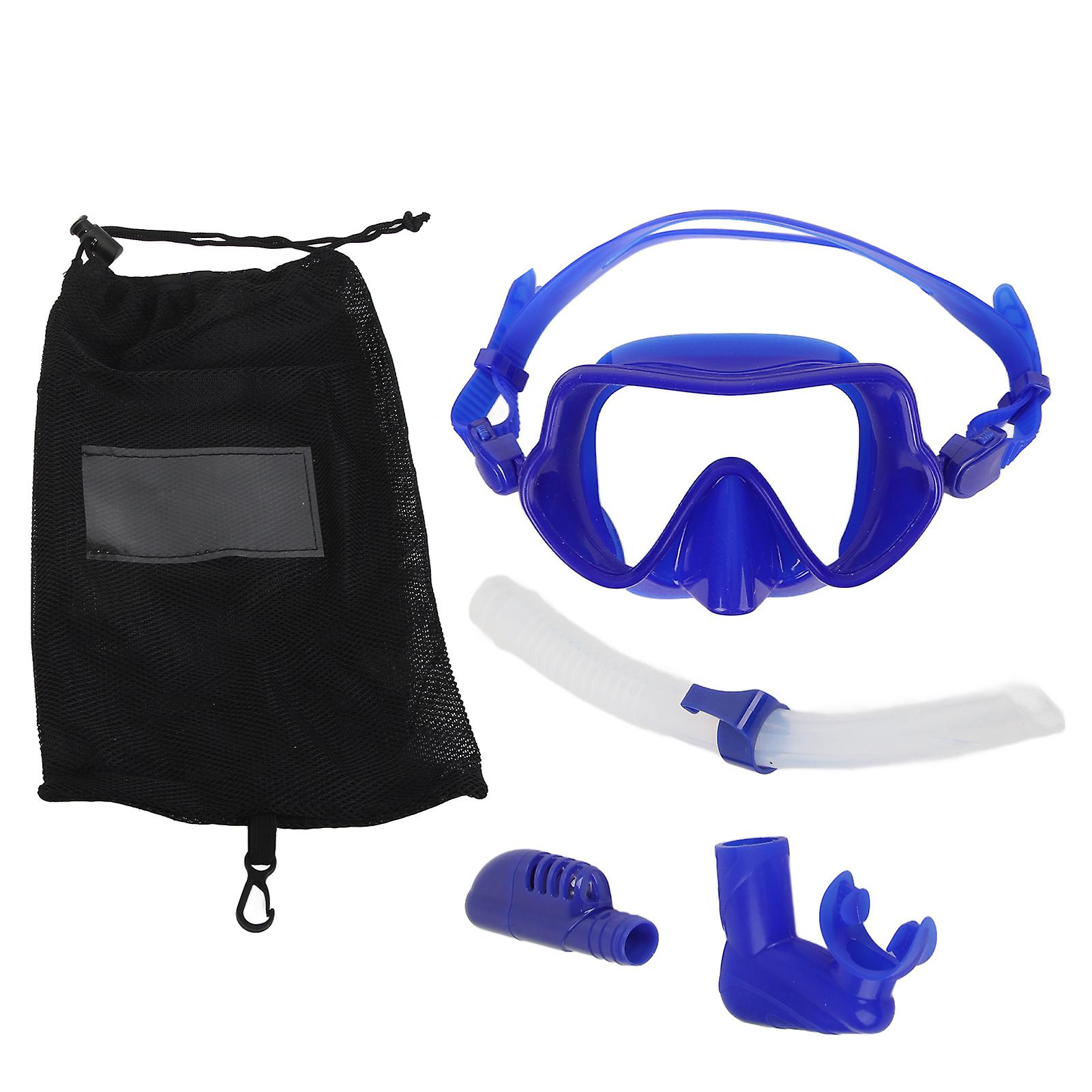 Portable Folding Snorkel Set for Adults - Blue Silicone Dry Top Goggles
