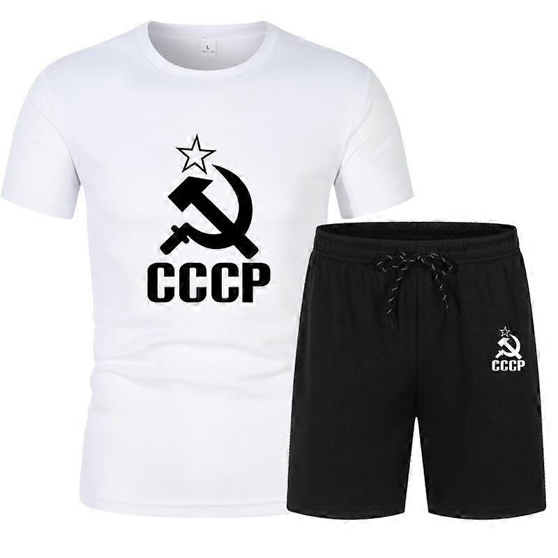 Tracksuit Male CCCP Summer Clothes Sports Clothes Set Two Pieces T Shirt Shorts Brand Track Clothes Male Runing Sports Suits