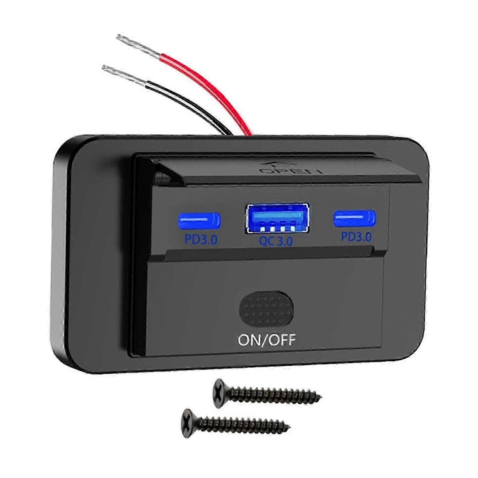 Car USB Charger Motorhome Charger Socket Panel for Motorcycle Boats Bus Blue Light