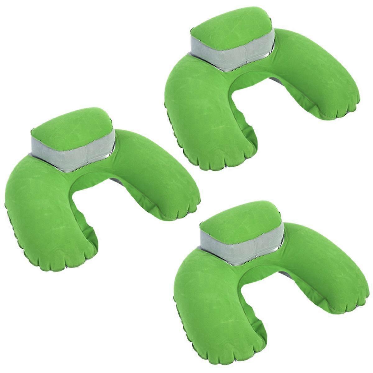 Inflatable Travel Pillow Airplane Neck Pillow Chin Pad Office Nap Pillow Home Gift Green