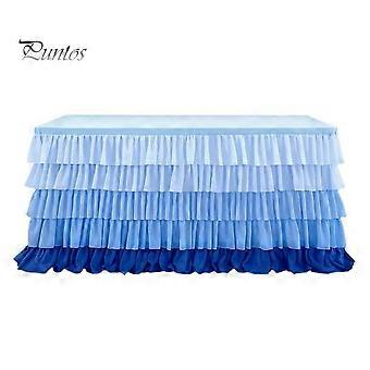Table Skirt for Rectangle And Round Table Multi-layer Ruffle Reusable Gradient Rainbow Color Beach Parties Ceremony Birthday Party Decoration Table
