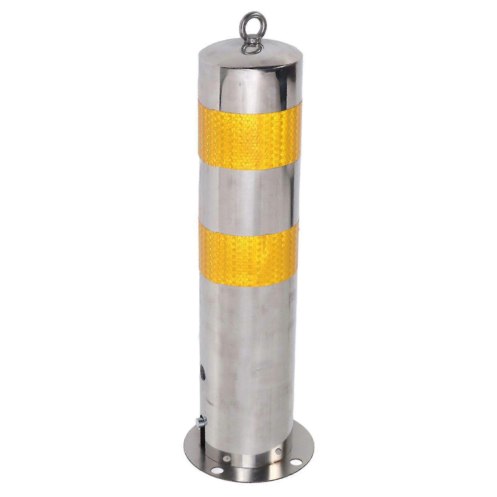 Safety Bollard Post Stainless Steel 55cm Parking Pile Barrier with Yellow Reflective Strip for Road