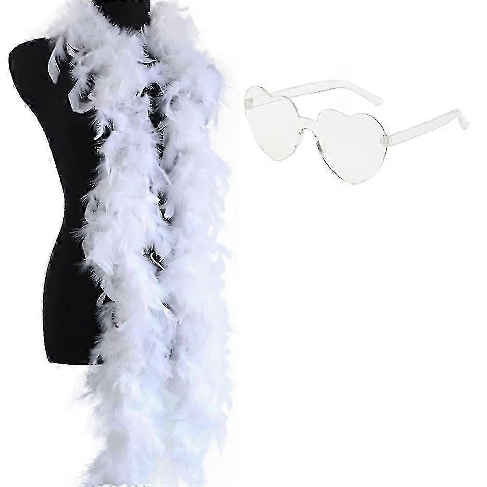 Feather Boas With Heart Rimless Sunglasses, 2m/6.6ft Colorful Feather Boa For Women For Dancing Wedding Party Cosplay Halloween
