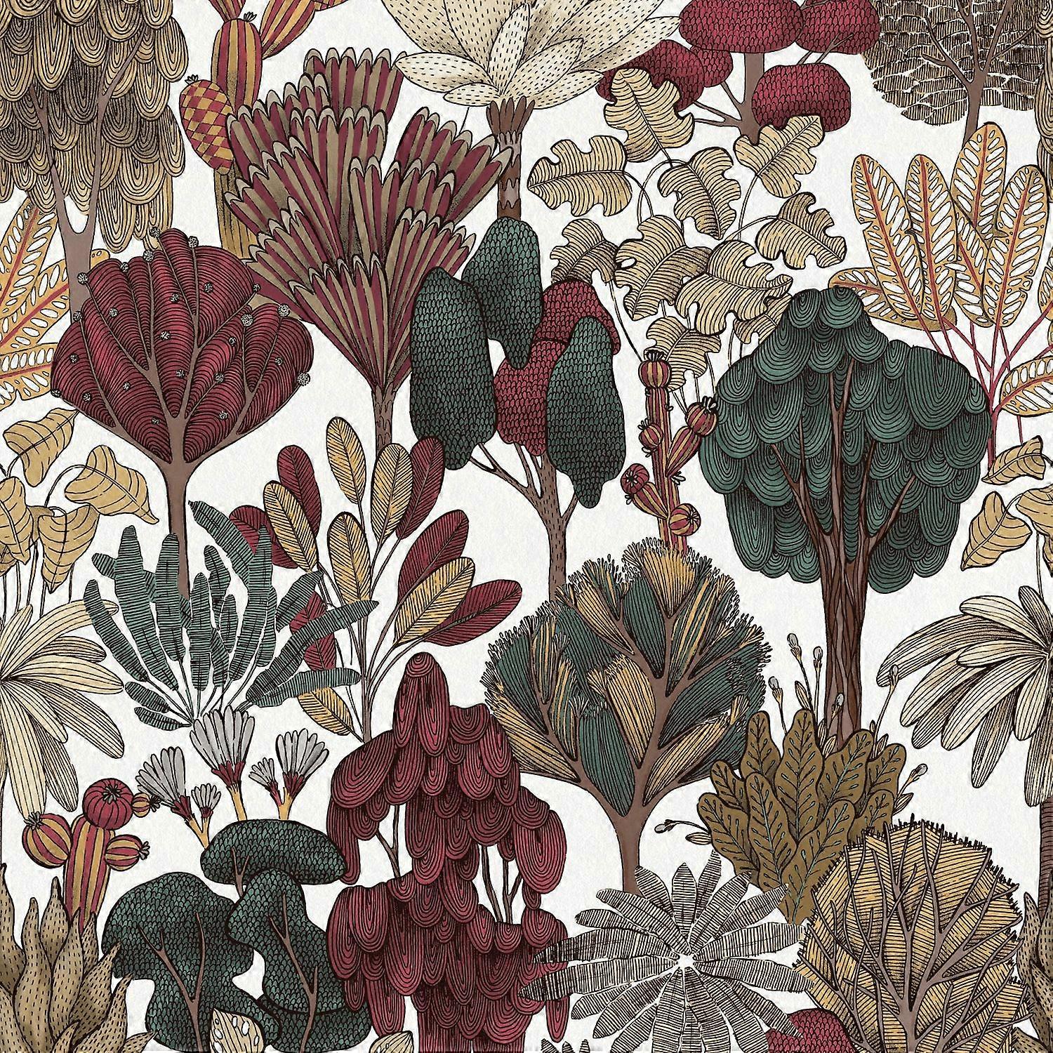 Papier peint nature Profhome 377577-GU papier peint intissé lisse avec des ornements floraux mat rouge beige brun vert 5,33 m2