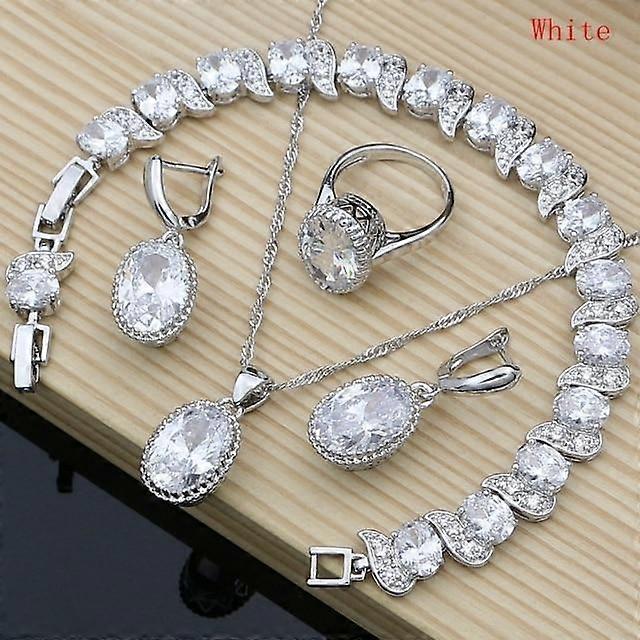 Natural 925 Silver Jewelry Red Birthstone Charm Jewelry Sets Women Earrings/Pendant/Necklace/Ring/Bracelets