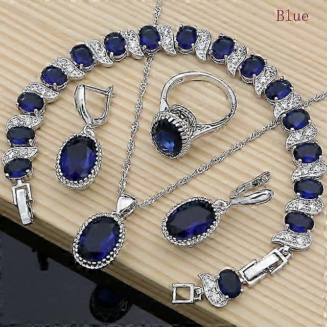 Natural 925 Silver Jewelry Red Birthstone Charm Jewelry Sets Women Earrings/Pendant/Necklace/Ring/Bracelets