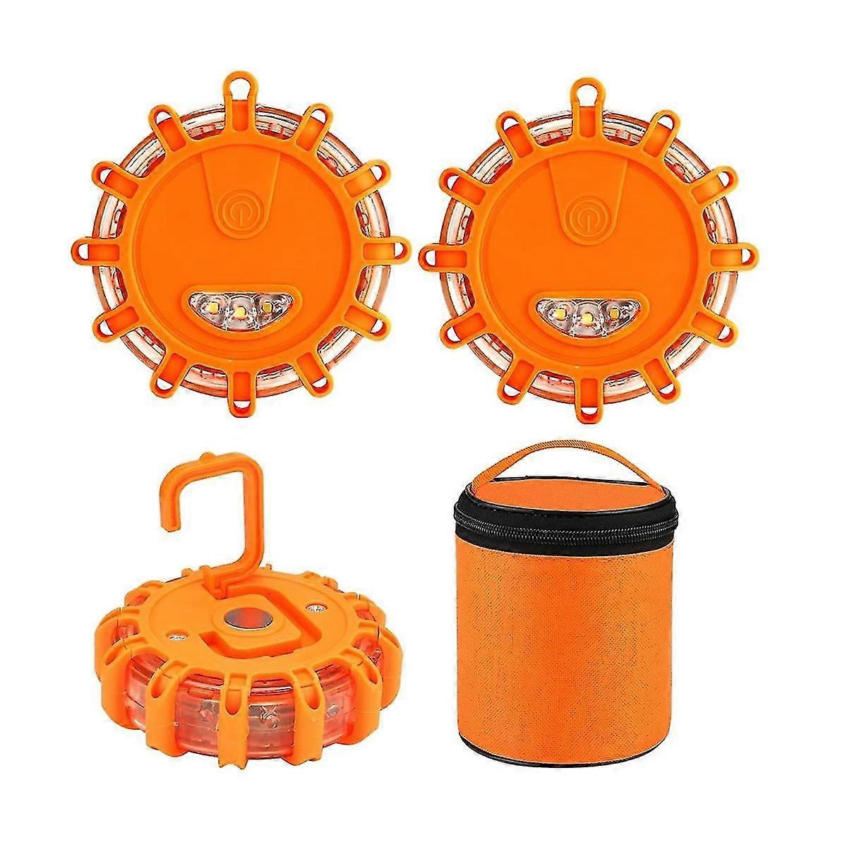 Led Road Flares Emergency Lights Roadside Warning Safety Disc Beacon Flashing Flare Kit,round