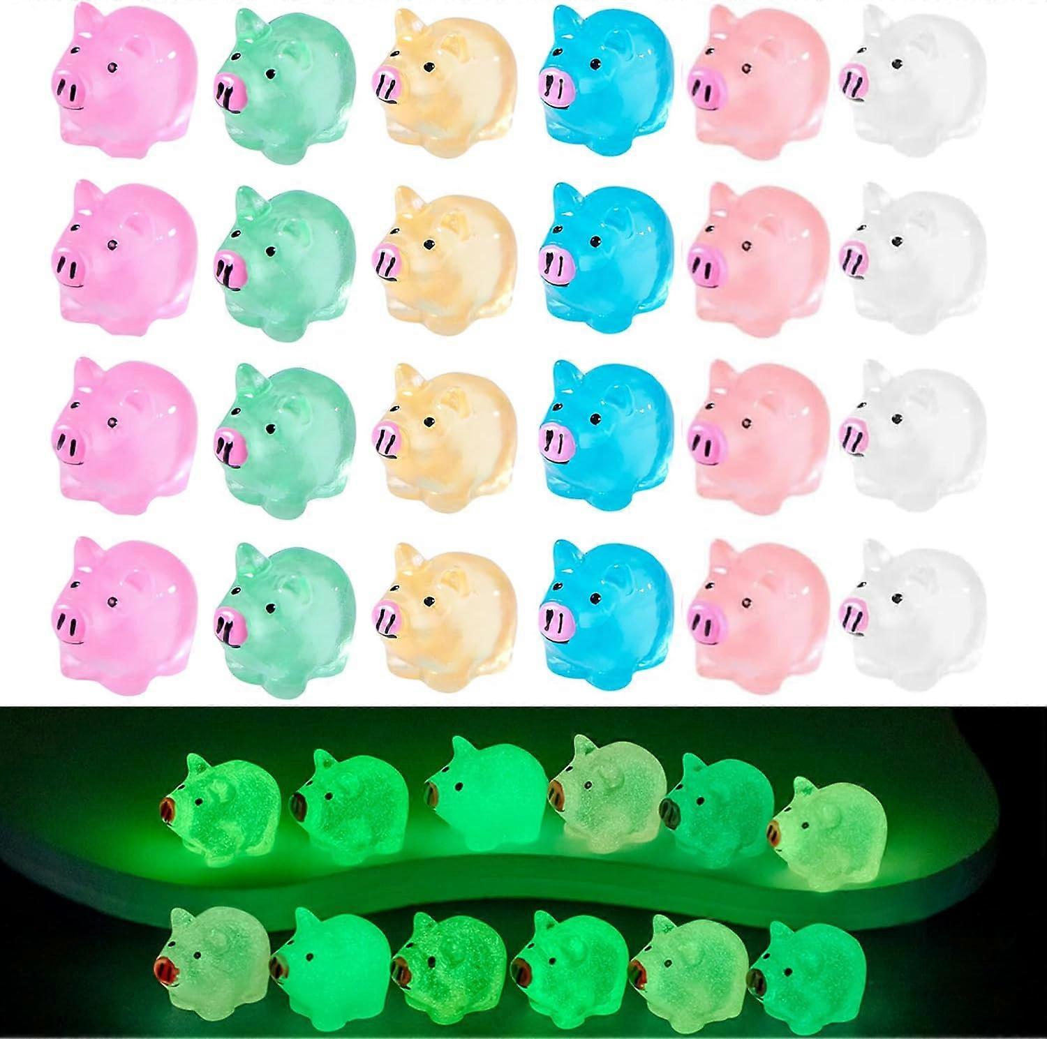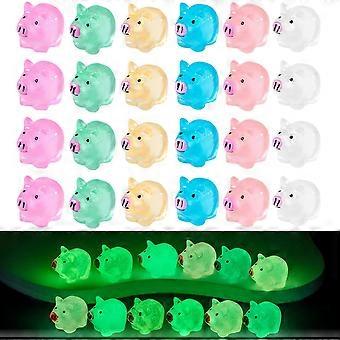 Luminous Mini Pigs Figures Miniature Fairy Garden Accessories, 50pcs Resin Tiny Pigs Micro Ornament DIY Fairy Landscape Dollhouse Decor