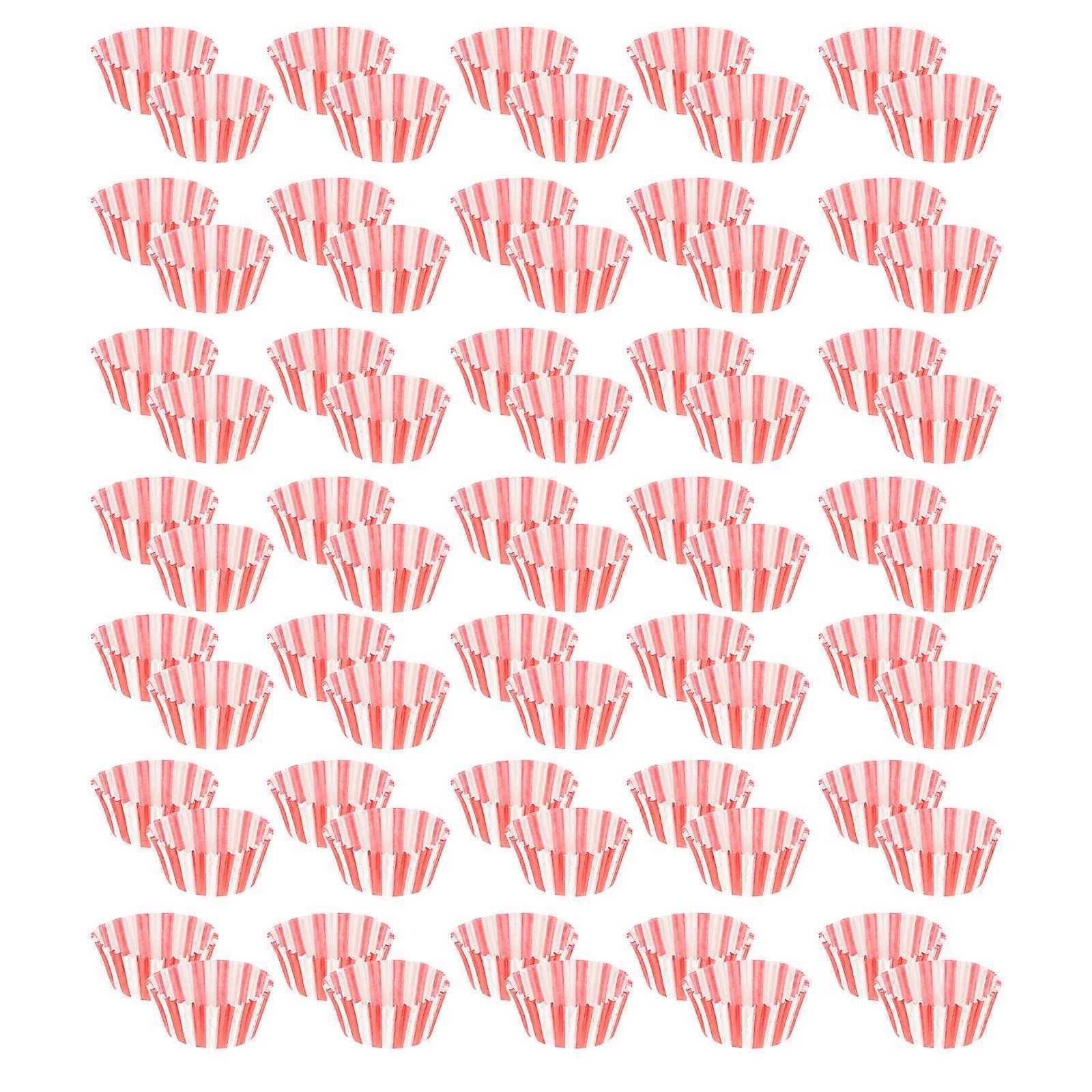 Bright Red And White Striped Muffin Cups Paper Cupcake Holders For Birthdays 6.50X6.50X2.70CM Practical 100Pcs