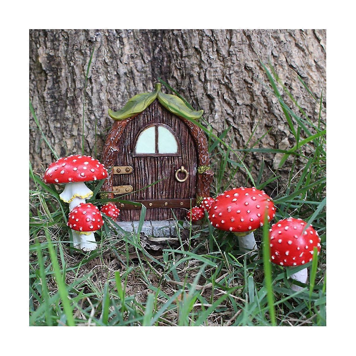Luminous Mushroom Door Window Ornament Yard Art Sculpture Statues Outdoor Home Decor Resin Garden D