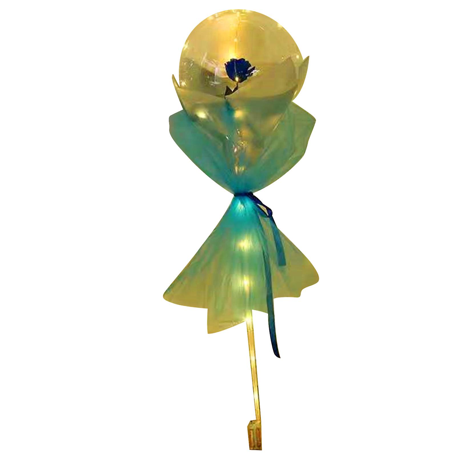 Luminous Balloon Rose Bouquet Transparent Ball Bouquet Valentines Day Gifts with Gauze Paperboard Full Set Blue