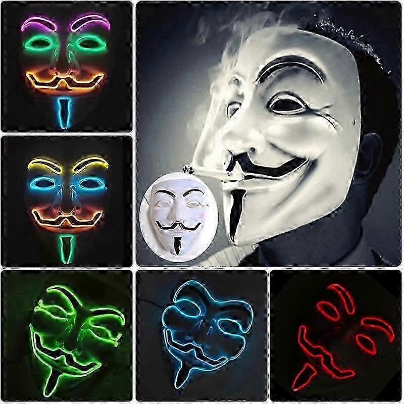 Luminous Light Up V For Mask Cosplay Guy Fawkes Hacker EL Wire Glowing Mask For Halloween Carnival Masquerade