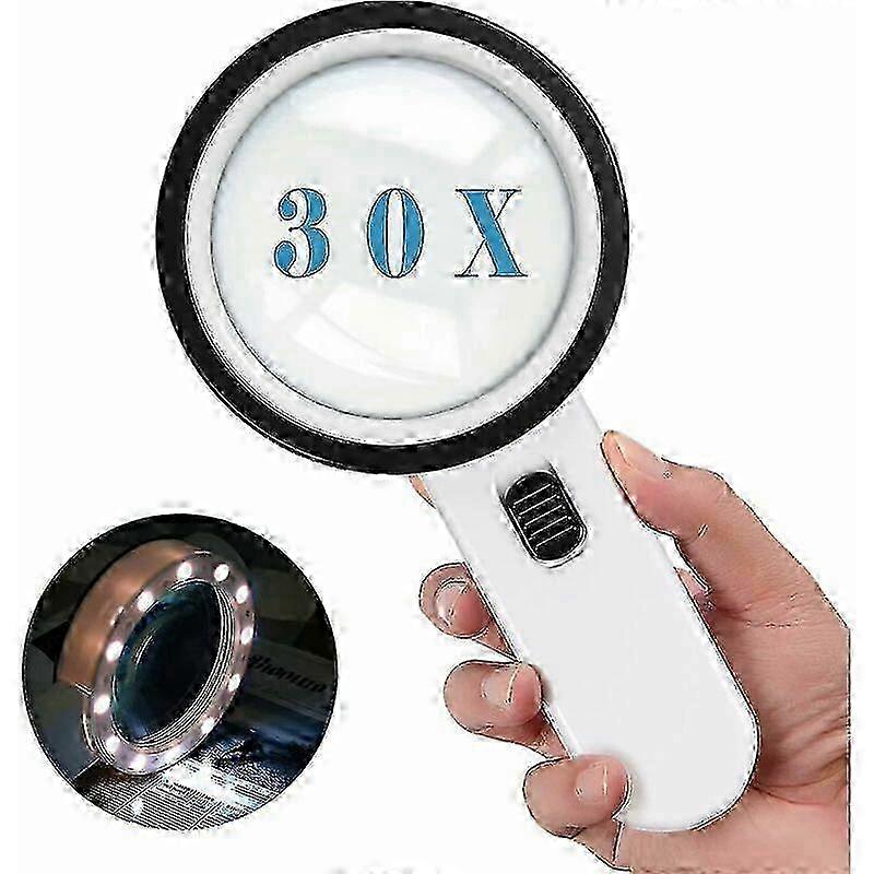 Illuminated Magnifying Glass, Magnifying Glass With Light, 30x Pocket Magnifying Glass Large 12 Led Magnifying Glass